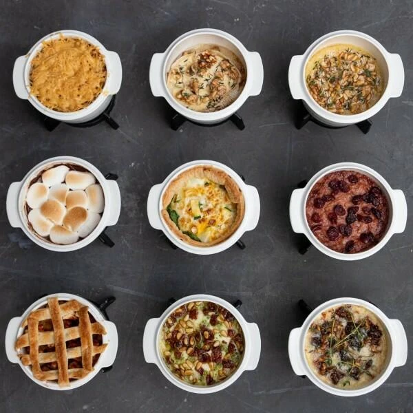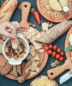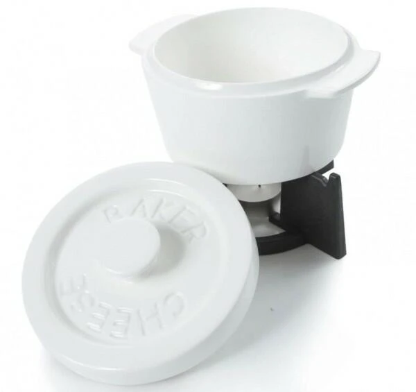 Der kompakte Cheesbaker von Boska bietet ausreichend Platz für ein großes Stück Camembert oder Blauschimmelkäse. Der Deckel und das Teelicht im Untergestell sorgen dafür, dass die Hitze lange im Topf bleibt. Nach Belieben können zum Käse Nüsse, Datteln, Kräuter und Gewürze hinzugegeben werden.