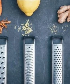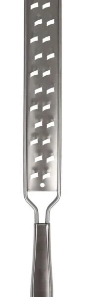 Die Edelstahlreibe können Sie bei der Verwendung absetzen oder in der Hand halten. Die Gummiunterseite und der flache Griff sorgen für zusätzlichen Halt. Nach dem Gebrauch kann die Reibe in der Spülmaschine gereinigt werden.