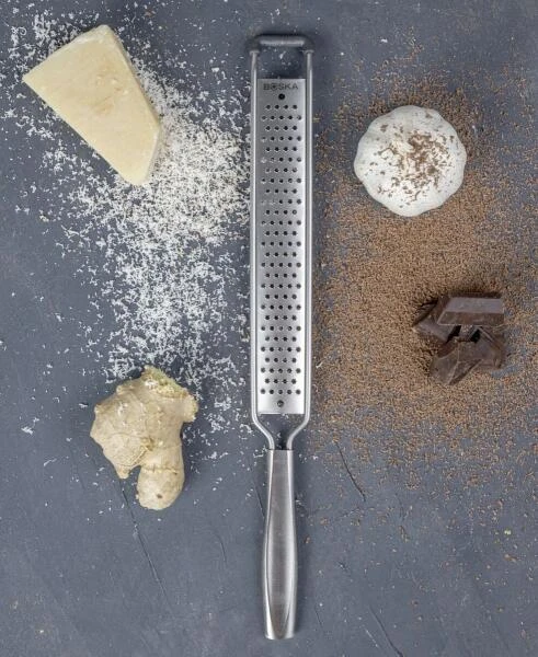 Boska Handreibe Star Monaco+. Reiben Sie schnell und einfach Pulver verschiedener Lebensmittel. Die Reibe ist für Hartkäse, Schokolade, Ingwer und Knoblauch geeignet.