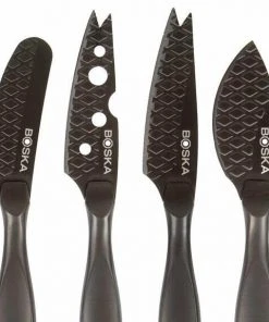 Boska Käsemesser-Set Mini Monaco+ schwarz, 4-teilig. Das besondere Set für Käseliebhaber: Bestehend aus Käsemesser für Weichkäse, einem Käsemesser für halbfesten Käse, einem Käsemesser für Parmesan und einem Streichmesser.