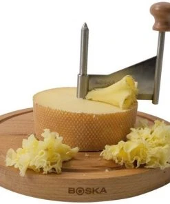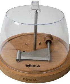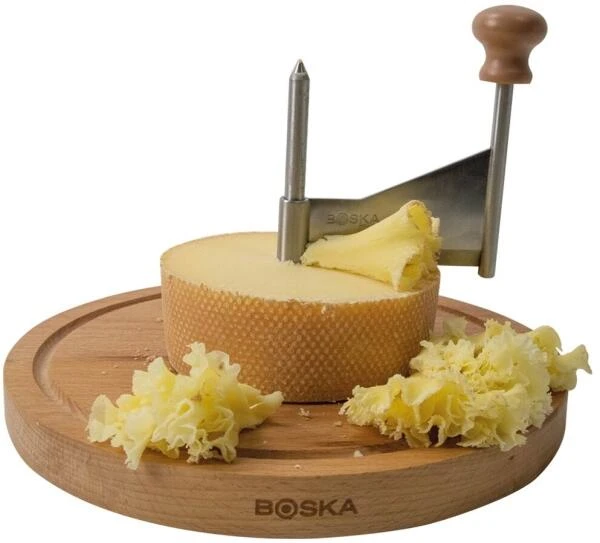 Mit dem Käseschaber von Boska wird das Käsereiben zuhause im Handumdrehen zu einem kulinarischen Erlebnis. Genießen Sie den halbharten pikanten Schweizer Tête de Moine-Käse bei einem guten Glas Wein. Der Käseschaber formt eine hauchdünne Locke, so dass der raffinierte Geschmack dieses Käses überraschend gut zur Geltung kommt. Auch der P’tit Basque, ein harter, aber milder Schafskäse aus den Pyrenäen, sowie der schmackhafte Gouda Rauchkäse schmecken luftig gelockt wunderbar. Der Käseschaber ist darüber hinaus auch noch eine hübsche Dekoration für Ihr Käsebrett. Mit der dazugehörigen Glocke bleibt der Käse länger frisch. Für ein süßes Dessert lassen sich mit unserem Käseschaber sensationelle Schokoladenlocken drehen.