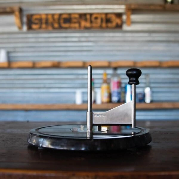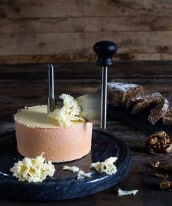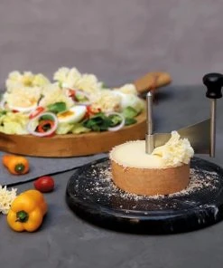 Boska Käseschaber Marmor mit Marmorplatte. Dieser Schaber formt eine hauchdünne Käselocke, so dass der raffinierte Geschmack des Tête de Moine-Käse überraschend gut zur Geltung kommt.