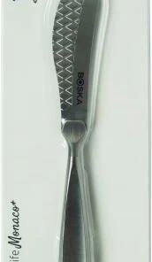 Käsemessers Monaco+ ist flach, und das sorgt für zusätzlichen Halt. Dadurch, dass das Streichmesser vollständig aus Edelstahl besteht, ist es spülmaschinenfest, sodass es schnell wieder sauber und bereit für seinen nächsten Einsatz ist.