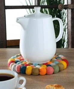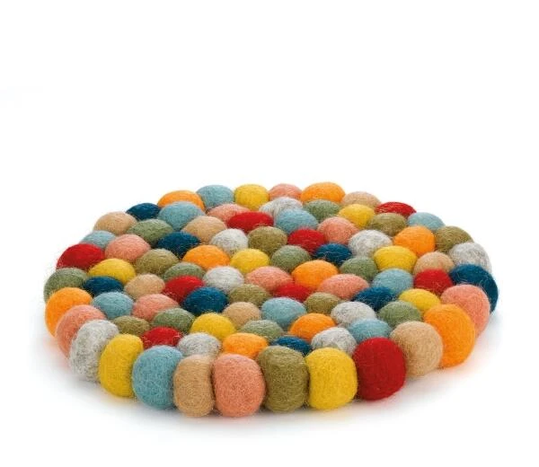 Untersetzer aus bunten Filzkügelchen. Ideal einsetzbar als Topf- oder Pfannenuntersetzter sowie als dekoratives Tischelement. Nicht nur waschbar, sondern auch Fairtrade und handgefertigt. Mit LANA unterstützt cilio die traditionelle Handarbeit von Frauen aus der Nähe von Kathmandu.