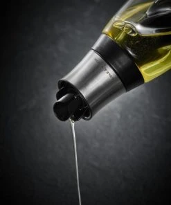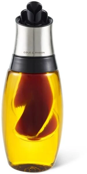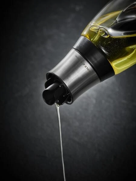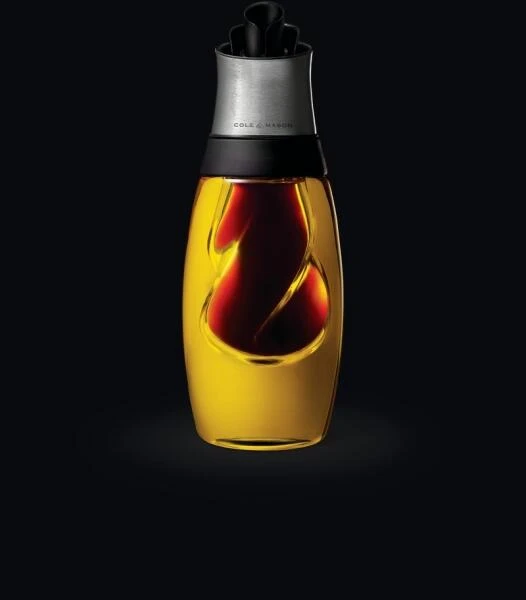 Das Öl- und Essig DUO von Cole & Mason präsentiert eine Öl- und Essig Flasche in einem. Die stilvolle Flasche verfügt über einen innenliegenden geschwungene Essigeinsatz, welcher gefüllt mit Balsamico Essig sich geschmackvoll in der umliegenden Olivenölflasche einfügt. Der hochwertige Ausgießer besitzt ein innovatives Rückflusssystem dank dessen, die Flüssigkeiten automatisch in den richtigen Container zurückfließen.