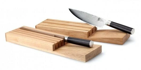 Messerblock aus Gummibaumholz für Schublade, unbestückt. Jeder dieser Messerblöcke für fünf Messer ist ein echtes Unikat.