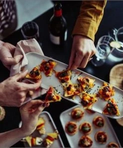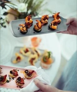 Aus dem Ofen direkt auf den Tisch. Die Aperitivo-Platten von Emile Henry bieten die wunderbare Möglichkeit Vorspeisen zuzubereiten und ohne Umstände auch zu servieren. Mini-Pizzen und Blätterteiggebäck, Garnelen-Canapés, Wurzelgemüse-Wedges, Mini-Spieße, Brötchen… backen und servieren Sie einfach heiß direkt auf der gleichen Platte. Das hochwertige Material aus Keramik hält die heißen Happen länger warm oder kalt, ganz nach Ihren Bedürfnissen. Der seitliche Griff erleichtert das Halten und Reichen der Platte. Unempfindlich gegen Kratzer, können Sie direkt auf der Keramikoberfläche schneiden oder essen.