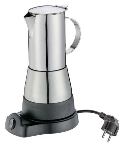 Der Espressokocher in der elektrisch betriebenen Version ist für die Zubereitung von 6 Tassen Espresso geeignet. Der Kocher besteht aus Edelstahl und verfügt über eine Warmhaltefunktion.