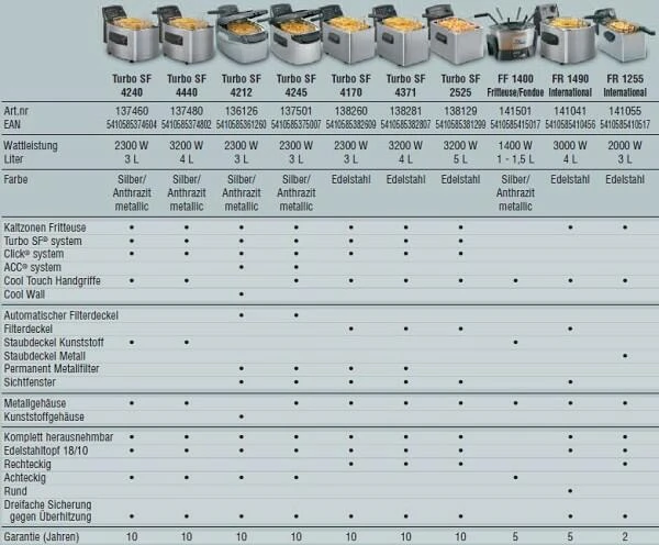 Eigenschaften der Fritel Fritteuse Turbo SF 4571: