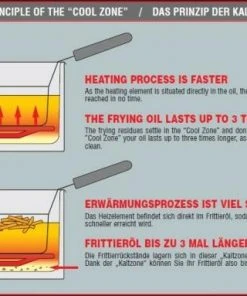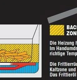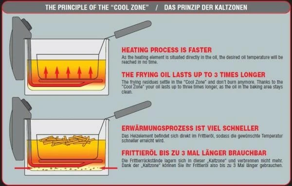 Alle Fritel Fritteusen verfügen über eine Kaltzone. Die Heizung hängt direkt im Fritieröl. Im Handumdrehen erreicht das Öl die richtige Temperatur. Die Fritierrückstände sinken in die Kaltzone und verbrennen nicht mehr. Das Fritieröl hält 3 Mal länger.