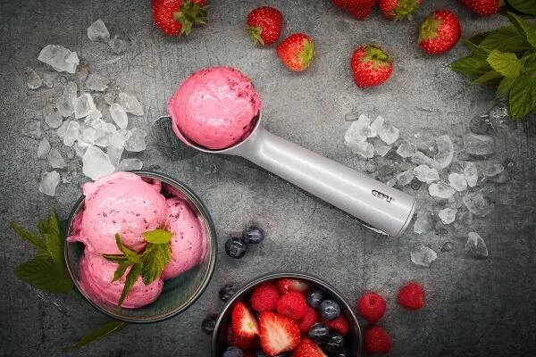 Das Aluminium sorgt dafür, dass Wärme schneller aufgenommen wird als Kälte. Dadurch können Sie auch ohne Vorwärmen oder viel Kraftaufwand durch feste Eissorten gleiten. Der breite griff ermöglicht eine einfache und sichere Nutzung. Und zum Schluss kann der Eisportionierer dank durchgängiger Oberfläche leicht mit warmem Wasser gereinigt werden.