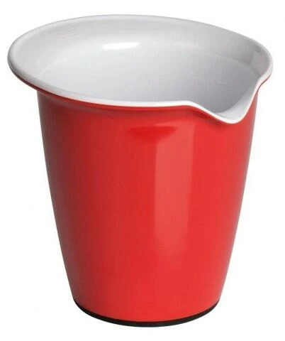 Kaiser Rührbecher in kirschrot/weiß, 1 Liter. Mit rutschfestem Standfuß und Innenskalierung.