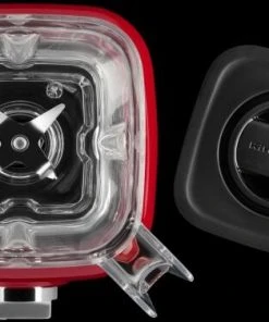 Standmixer K150 in empire rot. Hochwertiger Standmixer mit 3-teiligem Mix-System, bestehend aus einem 0,9 PS starkem Motor, einer einzigartig asymmetrischen Klinge und einem Behälter mit Skala.