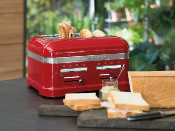 KitchenAid ARTISAN Toaster 4-Scheiben in liebesapfelrot. Modisch und bunt erledigen KitchenAid Artisan® Toaster einen klasse Job. Freuen Sie sich Scheibe für Scheibe auf köstlichen Toast, der die Luft mit dem Aroma von warmem Brot erfüllt.