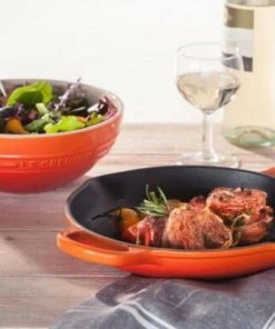 Le Creuset Pfannen aus Gusseisen zeichnen sich durch eine gleichmäßige Wärmeverteilung und eine hervorragende Wärmespeicherung aus. Einmal erhitzt, bleiben Le Creuset Gusseisenpfannen lange heiß. Das Bratgut kann selbst bei schwacher Hitze mit niedrigem Energieverbrauch in der Le Creuset Gusspfanne gebraten werden. Le Creuset Pfannen aus Gusseisen sind ideal zum scharfen Anbraten von Fleisch oder Gemüse. Kurzgebratenes erhält außen die richtige Bräune und bleibt innen saftig. Kein anderes Material brät so kross!