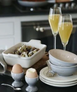 Le Creuset Eierbecher mit Standfuß in perlgrau. Die idealen Begleiter für jedes Sonntagsfrühstück.