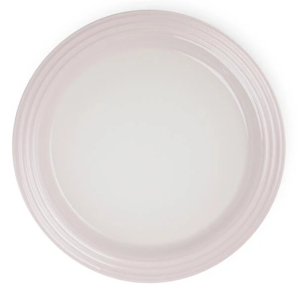 Le Creuset Speiseteller in shell pink. Der Teller eignet sich sowohl zum Servieren eines mehrgängigen Menüs als auch zum angemessenen Präsentieren des Essens am Sonntagmittag.