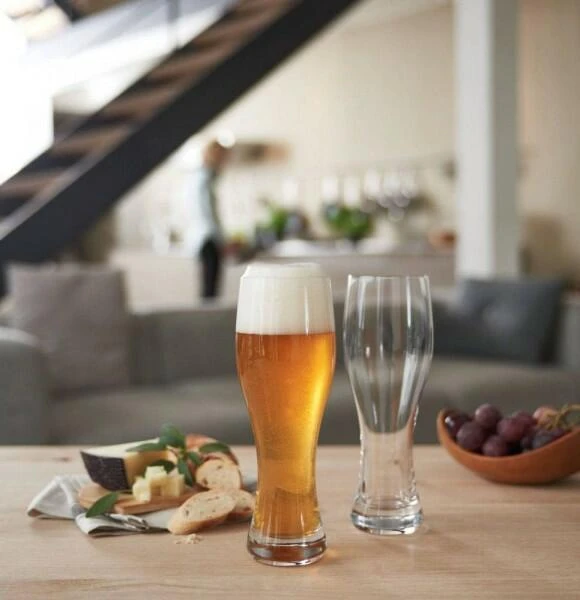 Leonardo Weizenbierglas Maxima optik, 2er Set. Dank des Reliefs an der Außenwand liegen die Biergläser gut in der Hand. Ein Glas fasst 0,5 l und hat damit die perfekte Größe für ein entspanntes Weizen.