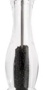 Pfeffermühle Nancy aus Acryl. Der transparente Korpus im klassischen Design läßt schnell die Füllmenge und den Inhalt bestimmen. Das Pfeffermahlwerk der PEUGEOT Pfeffermühle, bestehend aus einer zweireihigen Spiralverzahnung, führt und hält die Pfefferkörner für ein perfektes Mahlergebnis.