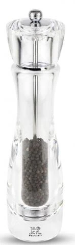 Pfeffermühle Vittel in Acryl. Die Schärfe des Pfeffermahlwerk der PEUGEOT Pfeffermühle sorgt für ein perfektes Mahlergebnis. Der transparente Korpus von Vittel ermöglicht das schnelle Erkennen des Inhaltes und der Füllmenge.