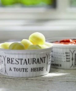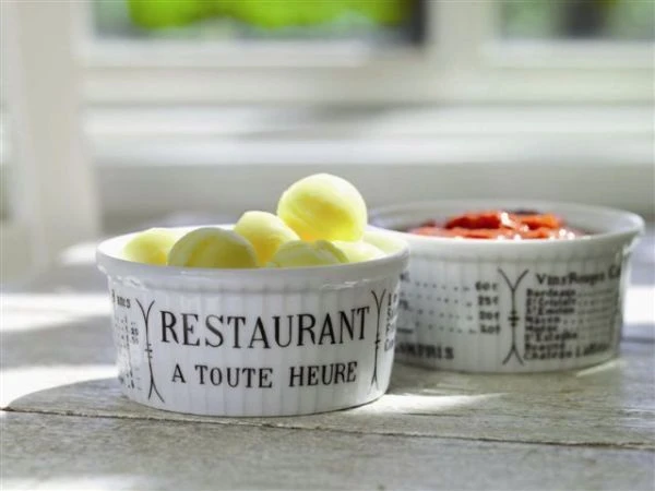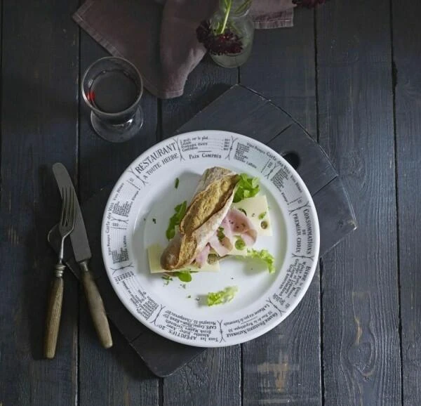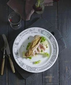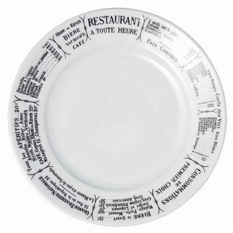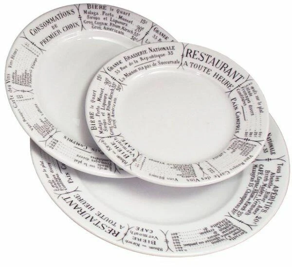 Pillivuyt Dekor Brasserie ist mit einer Speisekarte eines Pariser Bistros bedruckt. Damals konnte jedes Bistro, jede Brasserie und jedes Restaurant seine Speisekarte in das eigene Geschirr einbrennen lassen. Heute befindet sich auf dem