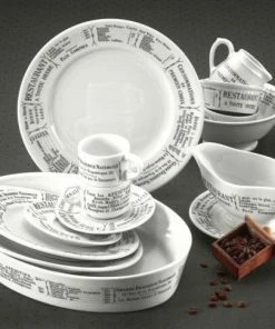 Pillivuyt Dekor Brasserie ist mit einer Speisekarte eines Pariser Bistros bedruckt. Damals konnte jedes Bistro, jede Brasserie und jedes Restaurant seine Speisekarte in das eigene Geschirr einbrennen lassen. Heute befindet sich auf dem