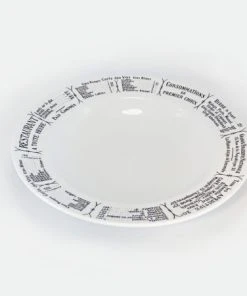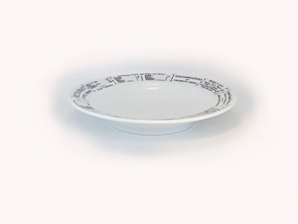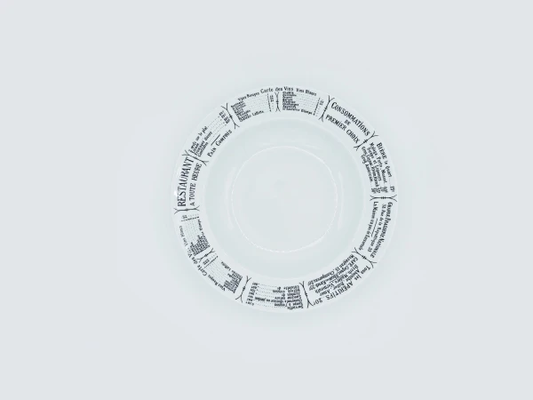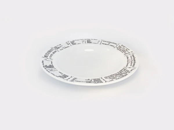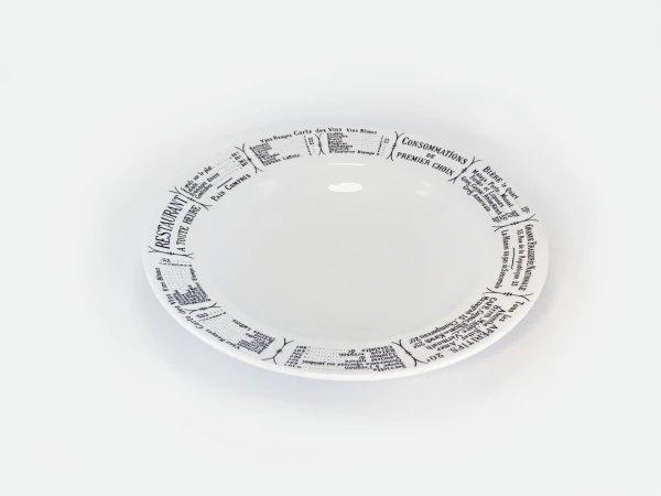 Pillivuyt Dekor Brasserie ist mit einer Speisekarte eines Pariser Bistros bedruckt. Damals konnte jedes Bistro, jede Brasserie und jedes Restaurant seine Speisekarte in das eigene Geschirr einbrennen lassen. Heute befindet sich auf dem
