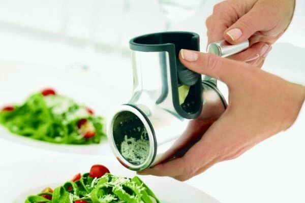 Mit ihrer runden Form liegt die Rösle Käsemühle angenehm und sicher in der Hand. Käse oder Schokolade wird von oben in die Mühle gegeben. Mit dem Daumen einer Hand wird der Käse auf die Reibe gedrückt während die andere Hand gleichzeitig die seitliche Kurbel bedient. Die extrem scharfe Reibefläche der Rösle Käsemühle garantiert ein Kraft schonendes und schnelles Reiben. Zur Reinigung kann die Rösle Mühle zerlegt und alle Teile – bis auf die Reibetrommel – können in die Spülmaschine gegeben werden.