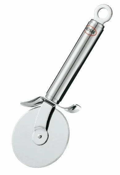 Pizzaschneider mit großem, stabil gelagertem Rad garantiert sauberen Schnitt, auch bei dicken Pizzaböden.