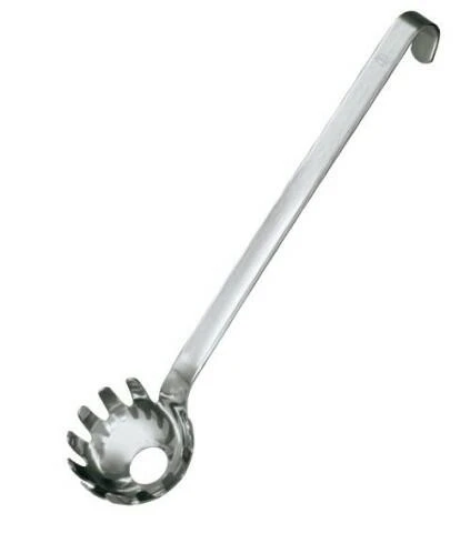 Rösle Spaghettiheber, lang . Der praktische Heber mit gezacktem Rand und Ablaufloch in der Mitte macht Schluß mit allen Problemen beim Heben, Schöpfen, Portionieren und Vorlegen von Pasta.