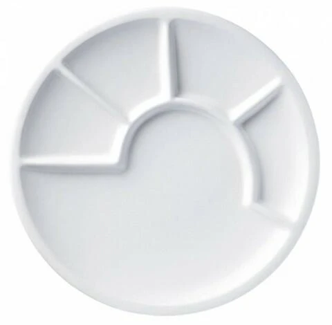 Fondueteller in weiß. Fondueteller aus hochwertiger Keramik zum Anrichten von Saucen und Zutaten für das perfekte Fondue.