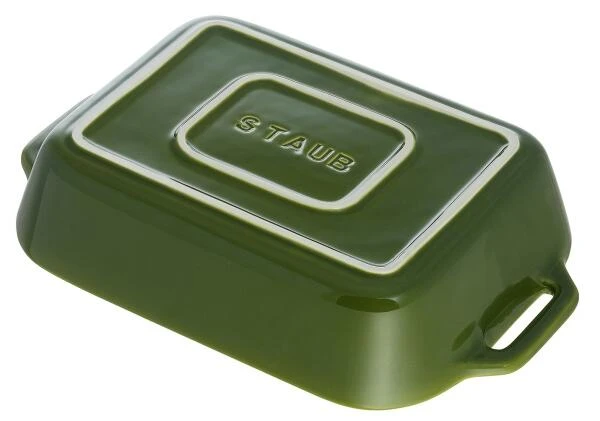 Staub Auflaufform aus Keramik in basilikumgrün. Zur Zubereitung von Gratins, Aufläufen, Gebäck und Desserts.