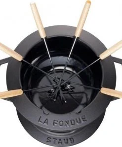 Staub Fondueset aus Gusseisen in schwarz. Fonduetöpfe aus Gusseisen speichern Hitze ideal und halten das Fett oder die Brühe besonders lange heiß – bei Tisch, wenn Sie mit Freunden das Fondue zelebrieren.