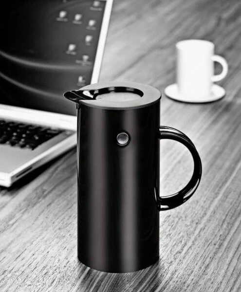 Stelton für einfaches Öffnen und Verschließen. 1986 wurde diese Version der Kanne vorgestellt und erfreut sich seitdem besonders bei Kaffee-, Tee- und Designliebhabern größter Beliebtheit.