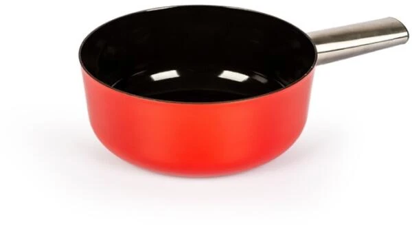 Caquelon Emotion mit Inoxgriff in rot-schwarz. Induktionsgeeignet und leicht. Das moderne Design des Caquelons sorgt für eine zeitlose Atmosphäre beim Fonduabend. In 2 Größen erhältlich.