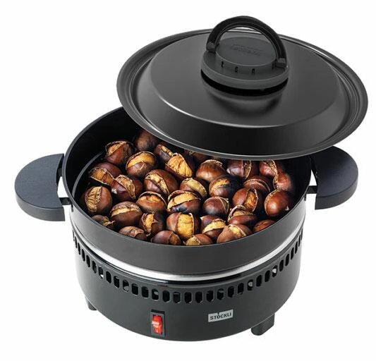 Mit dem Stöckli Marroniofen komplett gelingen nicht nur ihre gerösteten Marroni perfekt. Dank einer integrierten Grill- und Crêpe-Platte können sie außerdem Crêpes, Tortillas und sogar Ofenkartoffeln zubereiten. Auch als Tischgrill macht sich der Marroniofen gut. Zusätzlich zur hohen Funktionalität überzeugt er auch durch hochwertige Produktion, die bei Stöckli Gang und Gebe ist.